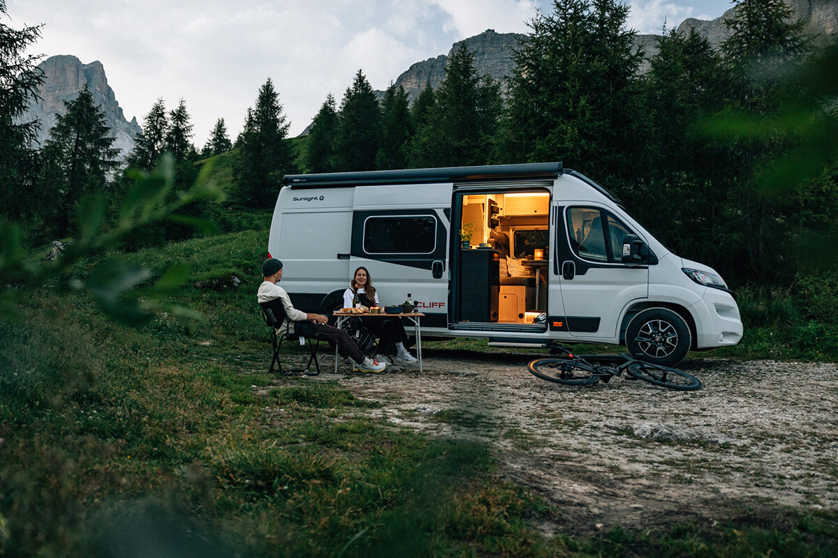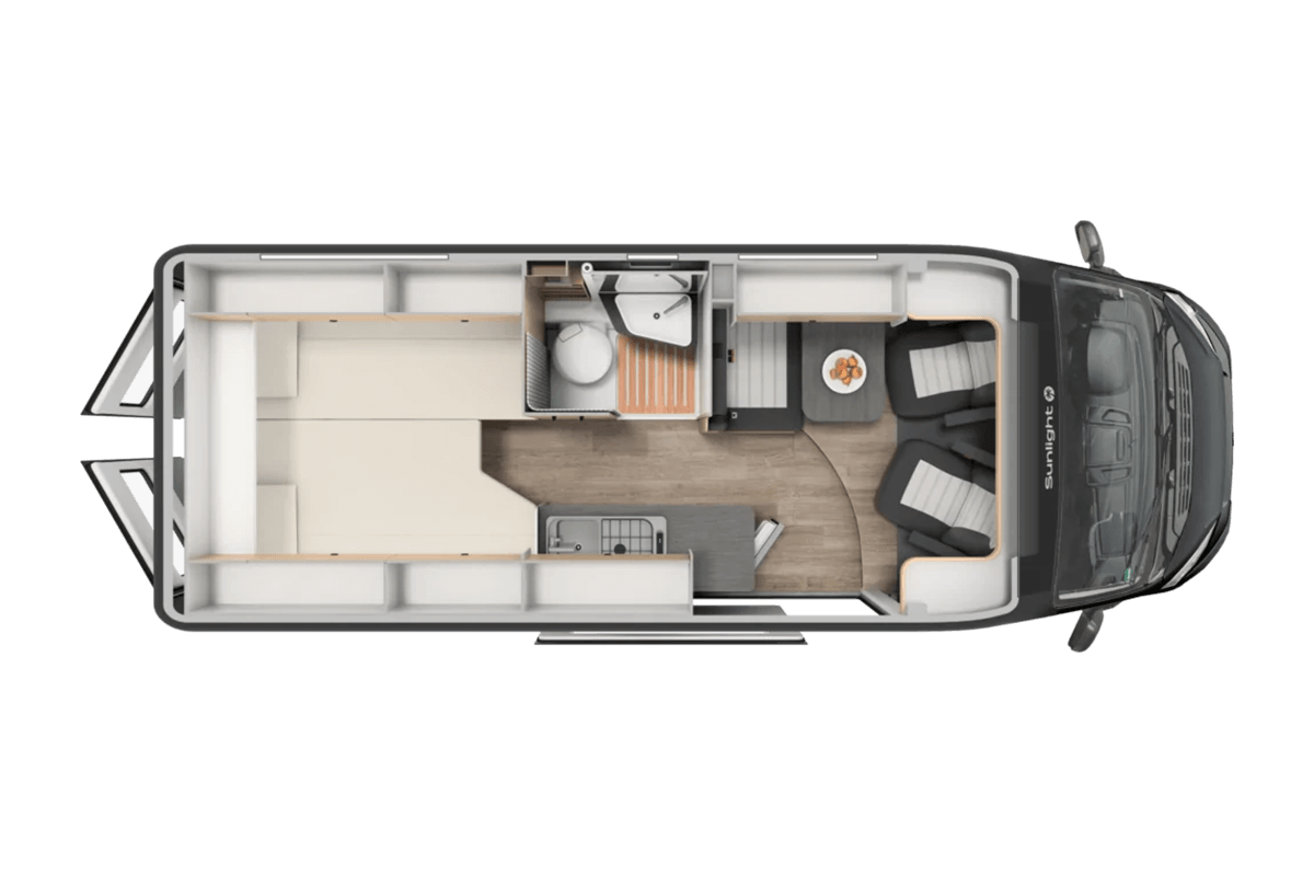 The 6.4m Sunlight Cliff Motorhome is available in 2 trim levels. The ever popular Adventure Edition and new for 2025, the Sunlight Cliff 640 X, which features a large front window allowing more natural light into the vehicle. Both models are available with a pop top roof and automatic gearbox.