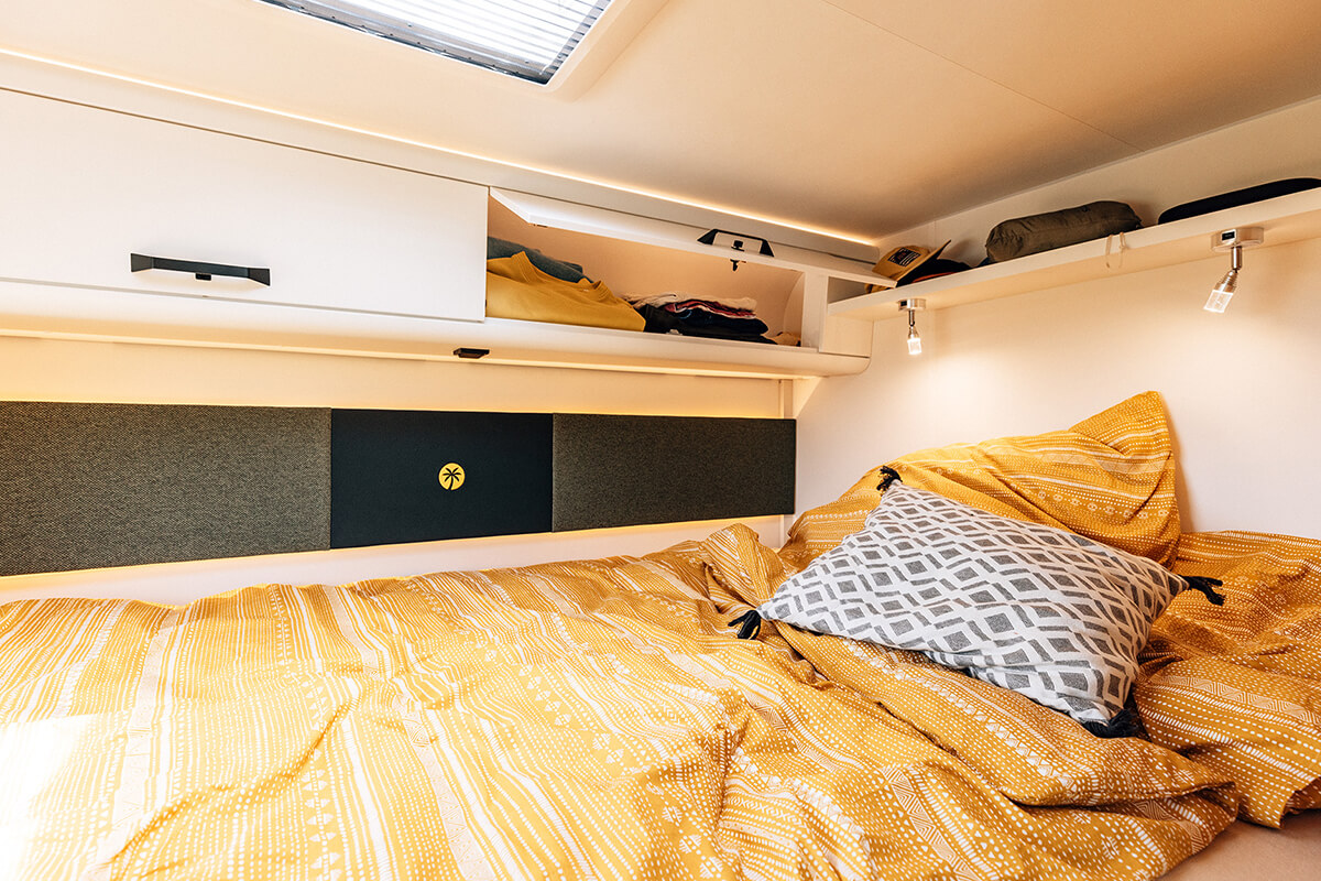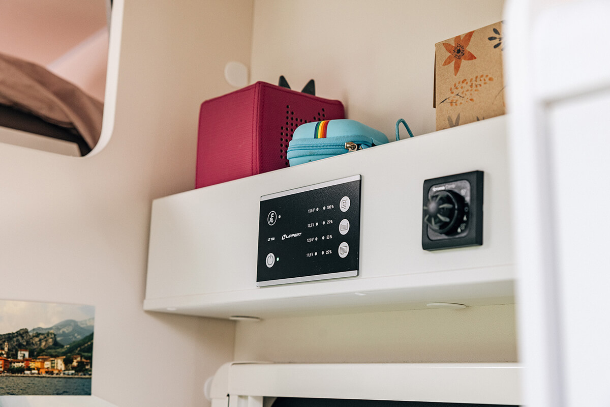 Inside the Sunlight A60, you’ll find a well equipped kitchen, cosy lounge area and two double beds! It also includes a separate shower, plus large fresh water and gas tanks.