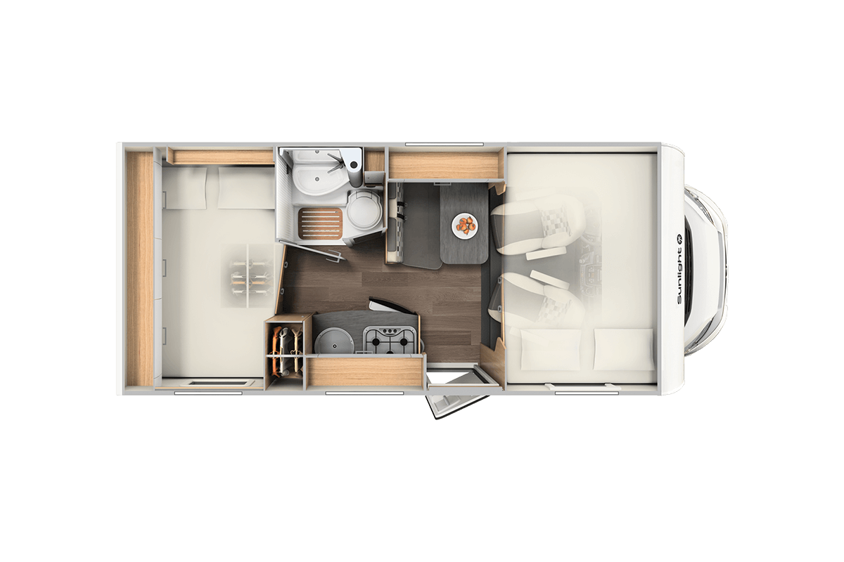 The Sunlight A60 Motorhome is a smart, space efficient choice for those seeking comfort and convenience while travelling. This compact Sunlight motorhome is designed to sleep up to four people, making it ideal for families, couples or small groups.