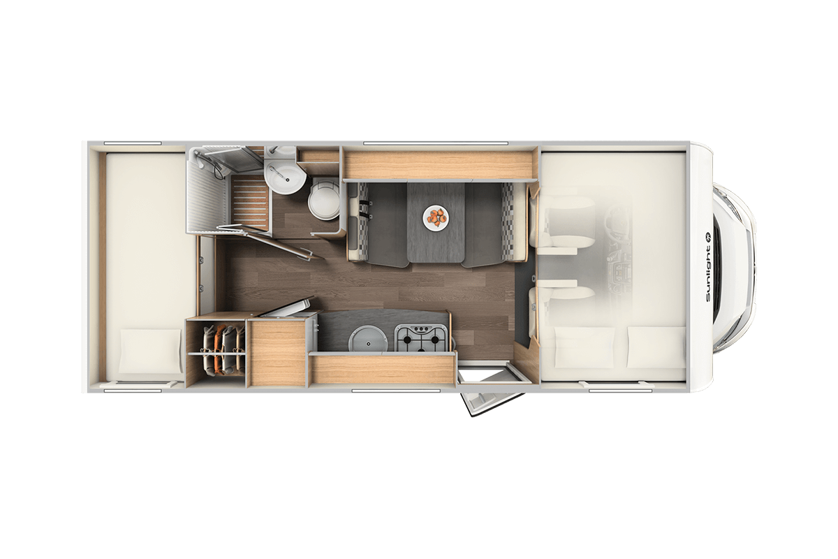 The Sunlight A68 motorhome offers a smart, spacious layout for up to six people. Built on the reliable Fiat Ducato chassis, this 6 berth motorhome is perfect for families or groups of friends ready to hit the road.