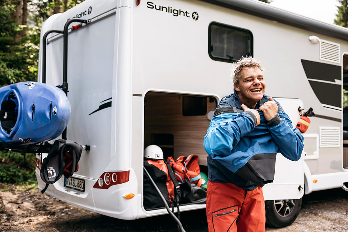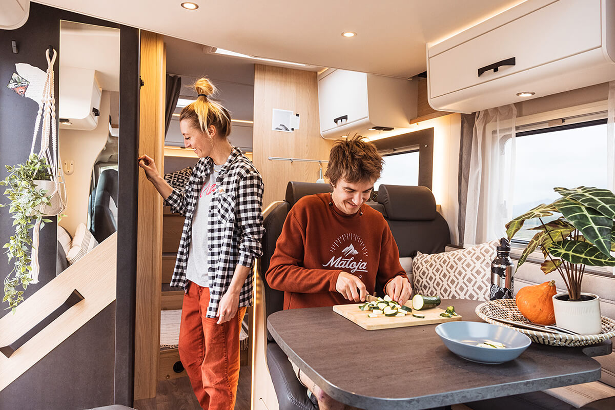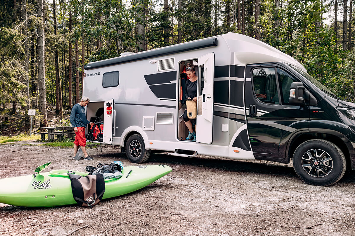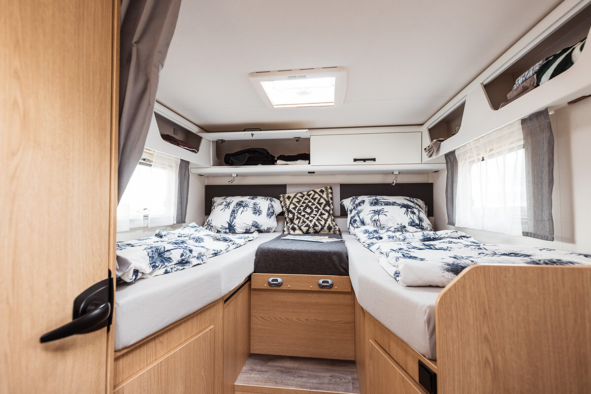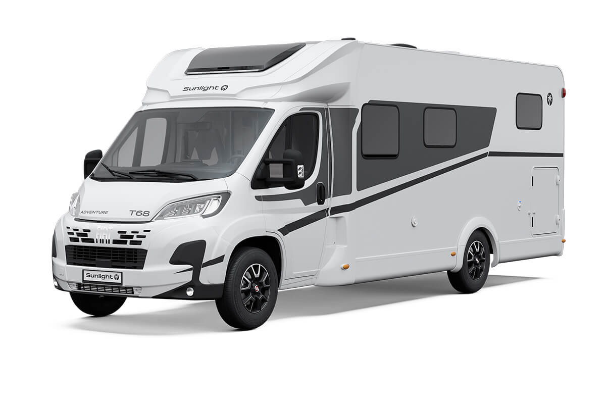 At only 7.4m The Sunlight T68 Adventure Edition comes standard with a fixed rear bed and an awning.