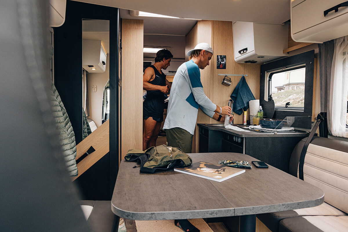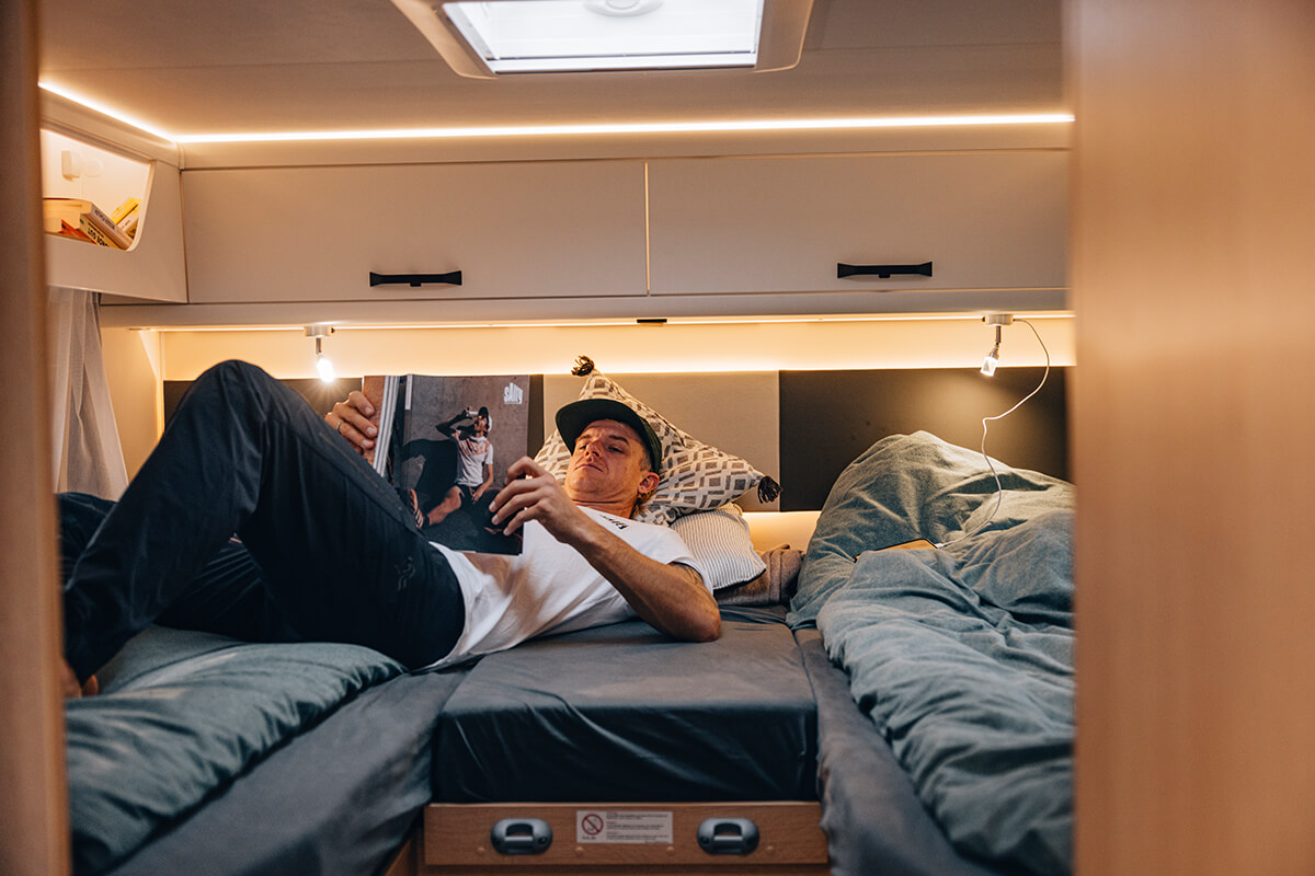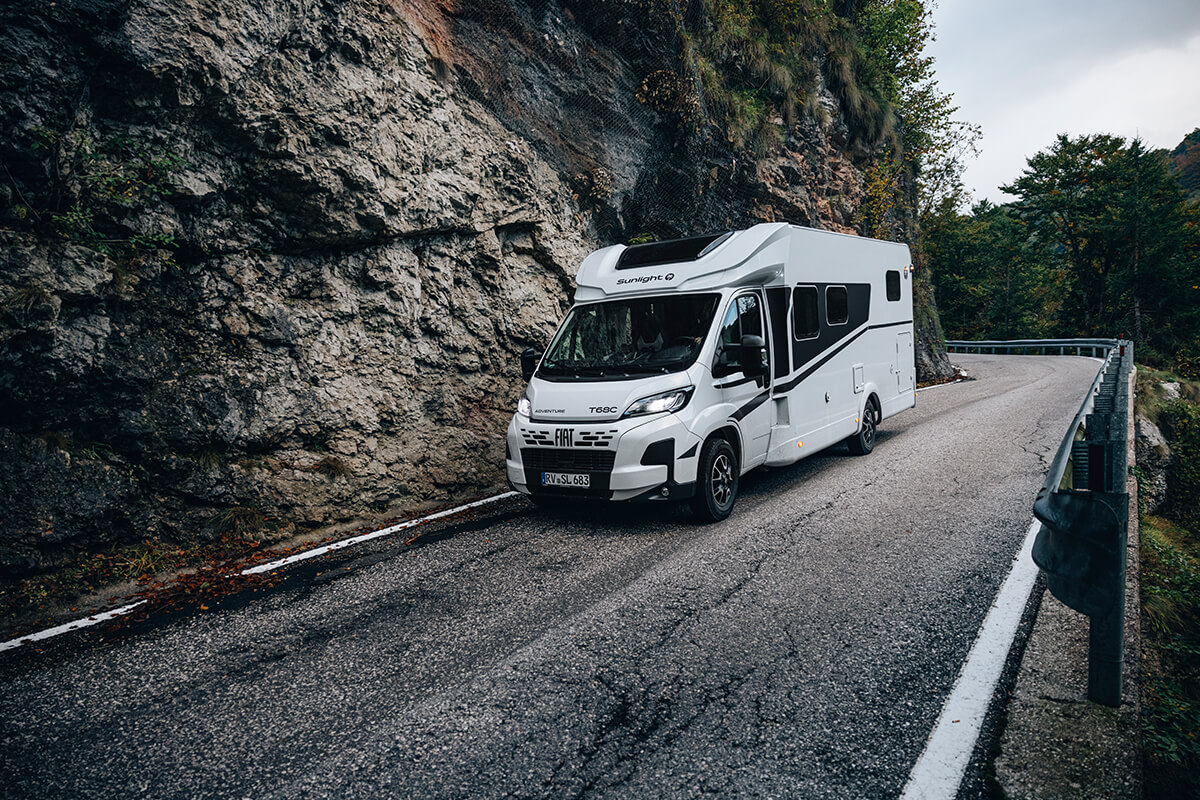 At only 7.4m The Sunlight T68 Adventure Edition comes standard with a fixed rear bed and an awning. The T68 can sleep up to 5 people and transport 4 people in comfort.