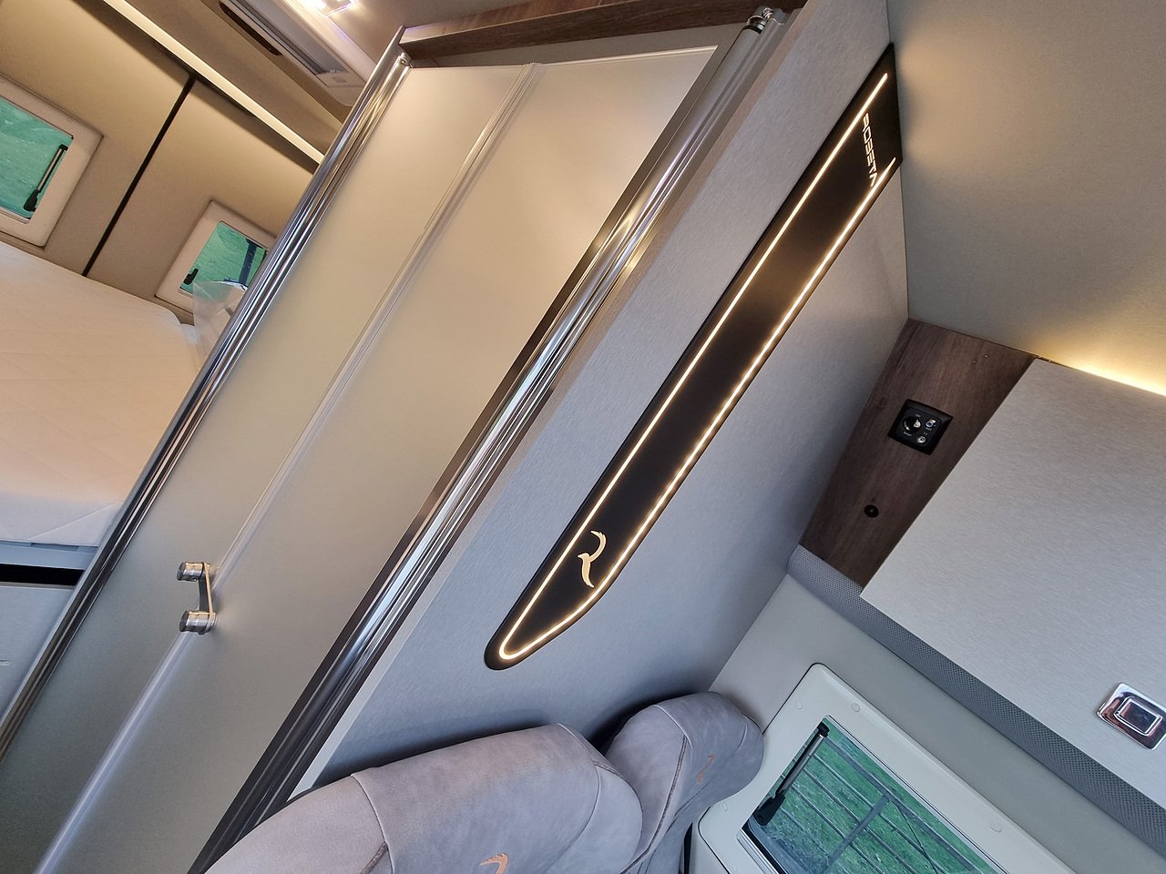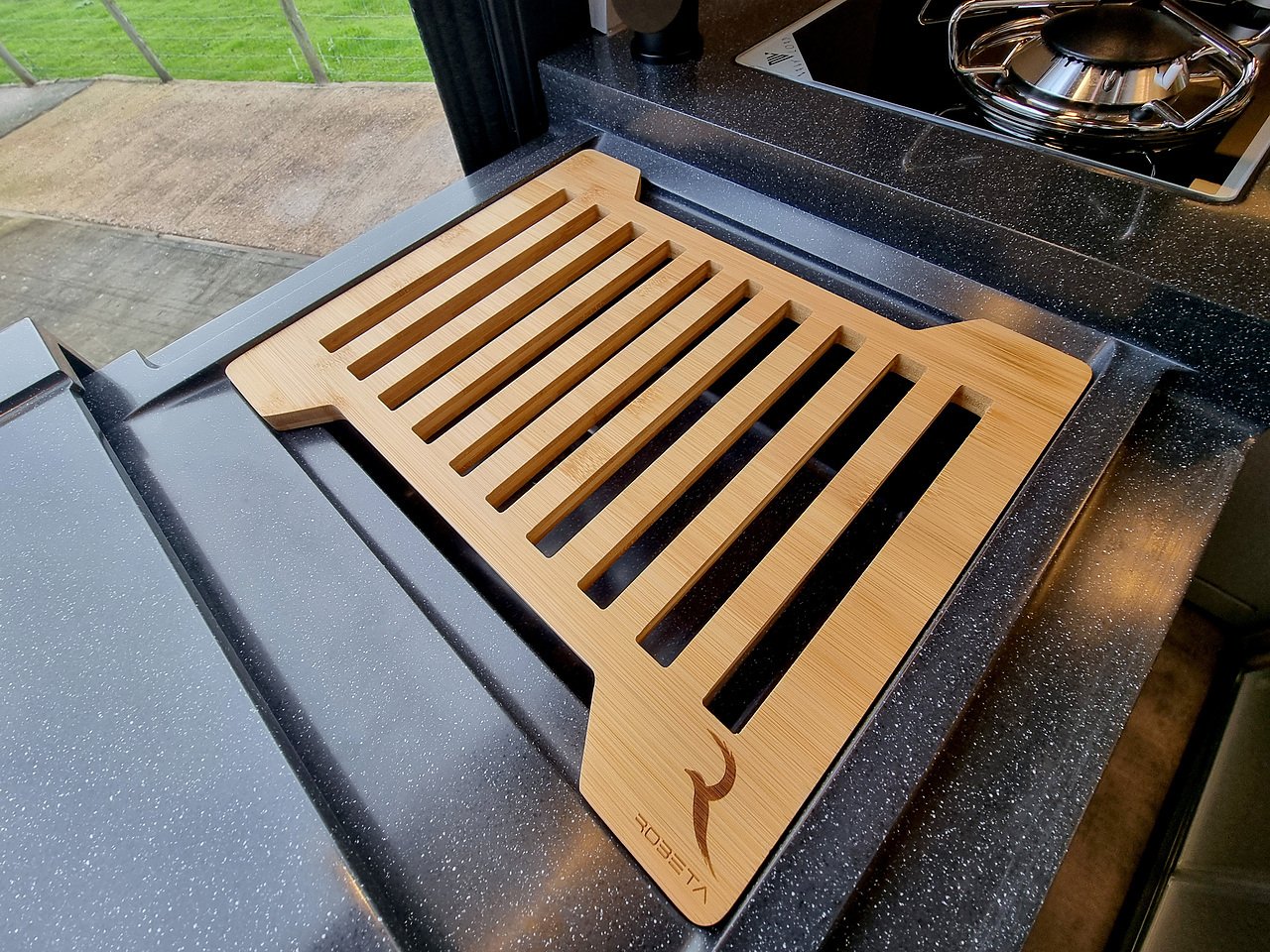 The Robeta Adonis boats a sleek grey interior, real Kerrock kitchen countertops, and a 'hidden sink'.