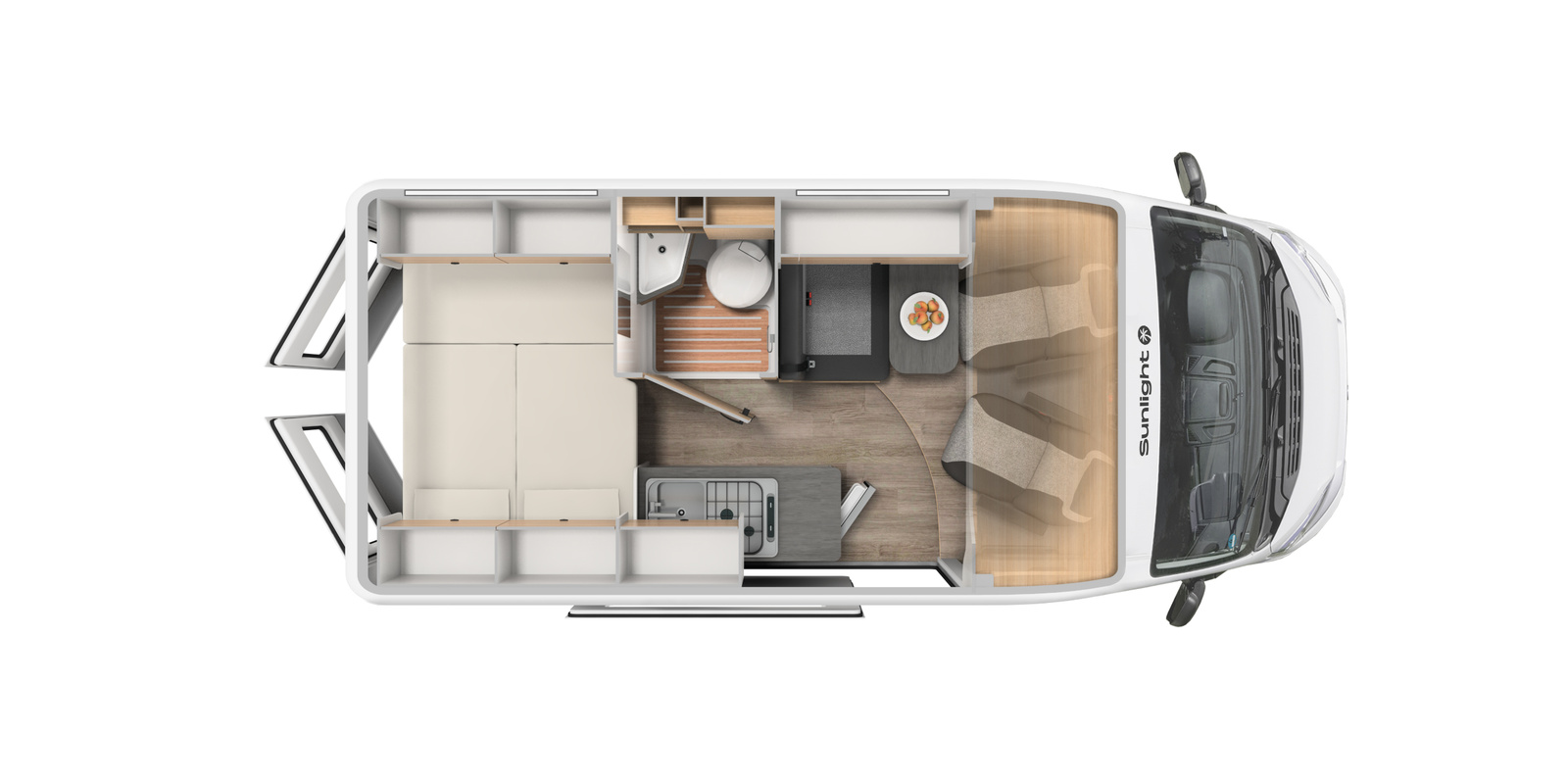 With the driver & passenger captain swivel seats, you can dine or relax in the lounge area with extending table. We've even added the 3rd bed option to convert the lounge area into a single bed along with TV pre cabling & bracket included.