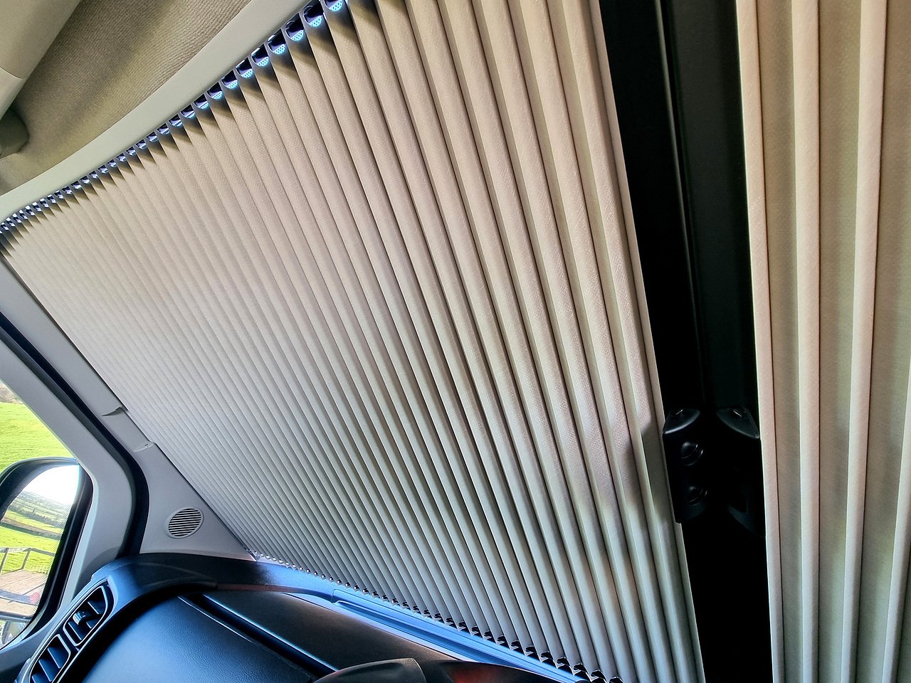 In the cab area, you have the remis blinds on the windows.