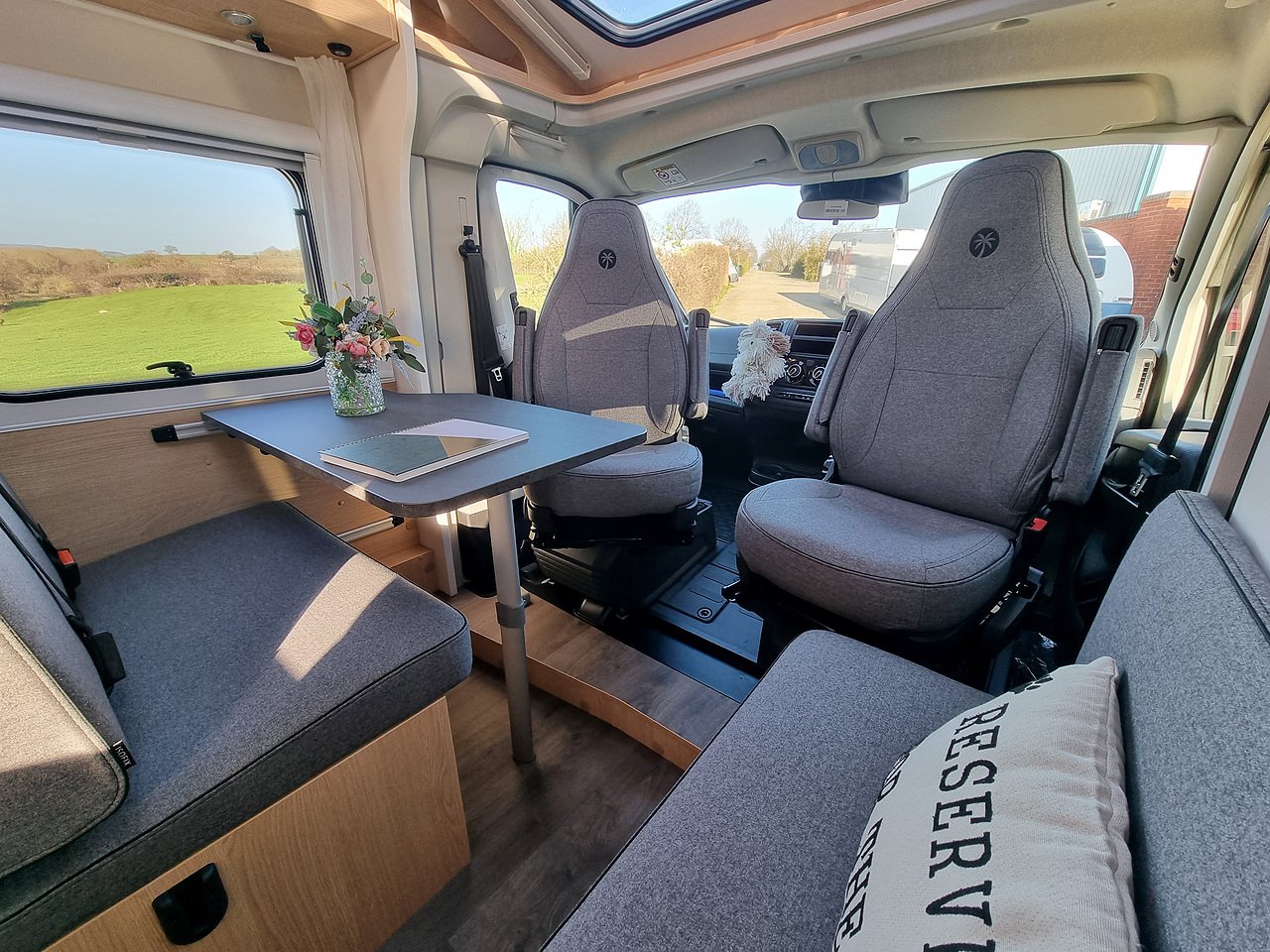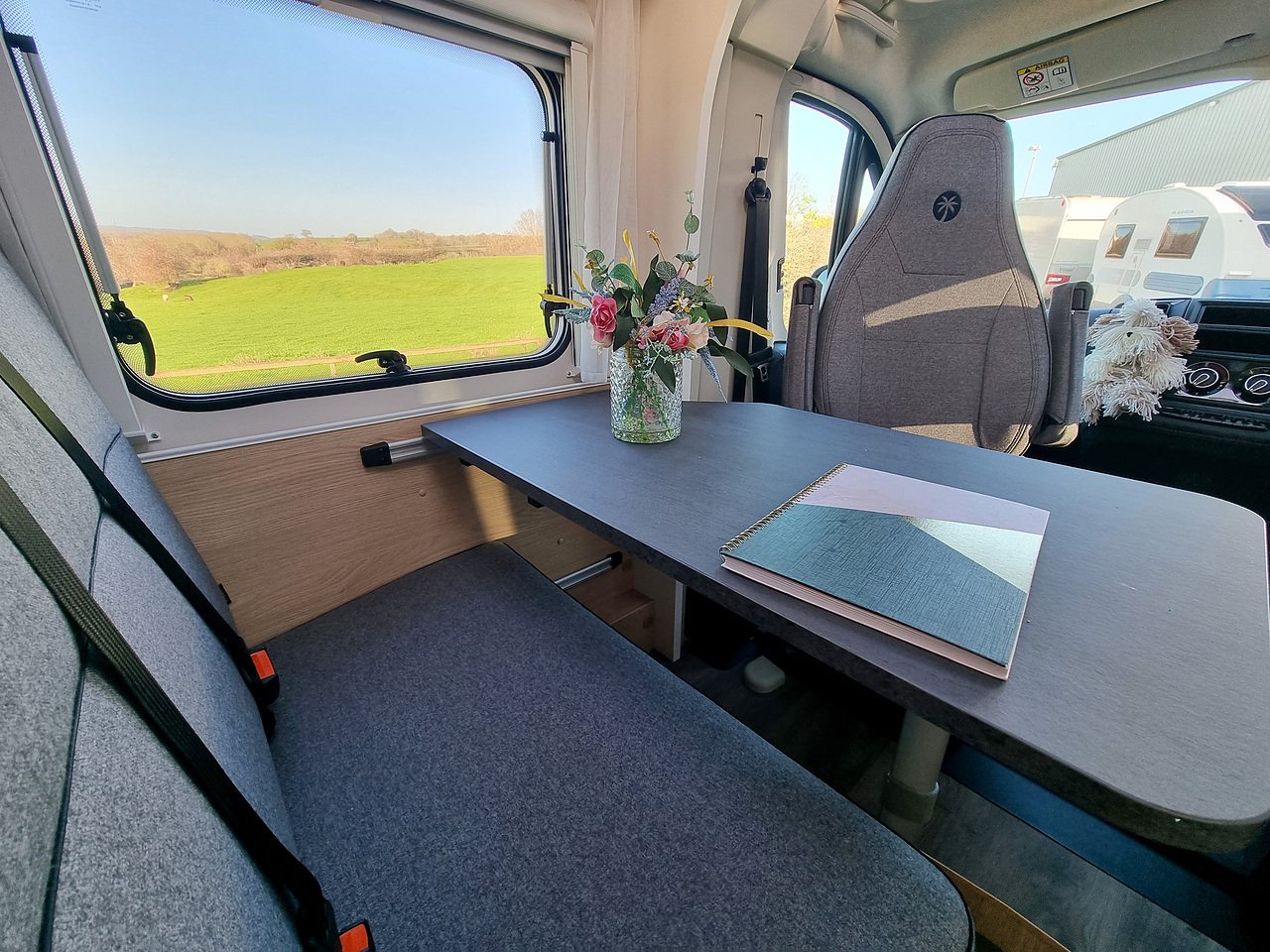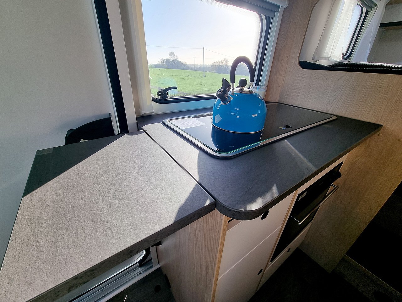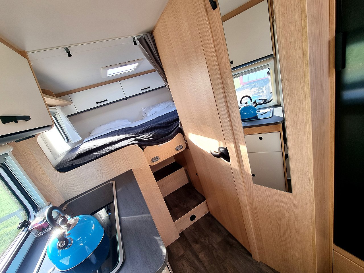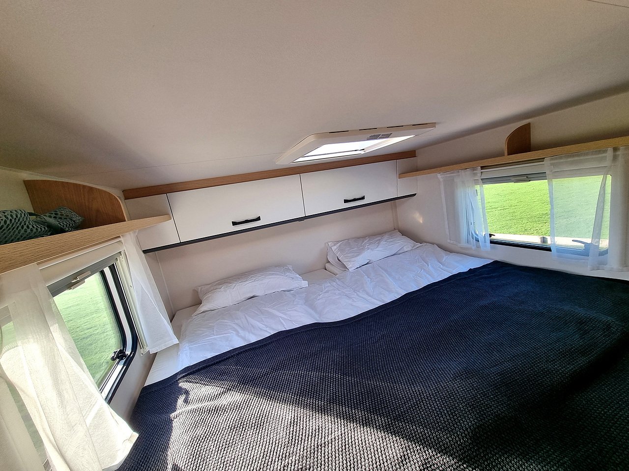 This 4 berth motorhome has a fixed rear bed with 2 single beds that can be easily made into a large double bed. You will then find a uniquely designed front bunk bed which can easily be made up above the lounge area along with the bed conversion for the lounge area.